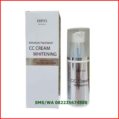 Produk  Ertos CC Cream nama lengkapnya Intensive Treatment CC Cream Whitening ini bekerja secara efektif memberikan perlindungan secara sempurna untuk menutupi bekas luka dan kekurangan kulit wajah Anda. Bahan aktif yang terkandung di dalam CC Cream Erto�s ini mampu bekerja secara efektif untuk membuat tampil lebih cantik, indah dan bercahaya.